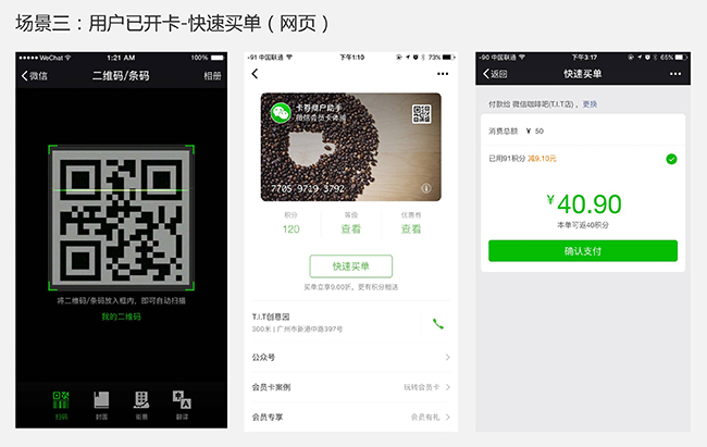 2.調(diào)起微信支付:商家可配置在卡內(nèi)調(diào)起微信支付,目前已支持調(diào)起網(wǎng)頁支付,在即將發(fā)布的新版本里,將支持調(diào)起刷卡支付,實現(xiàn)消費閉環(huán)。