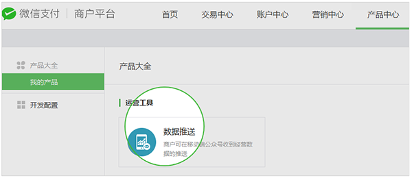 1. 登錄商戶平臺(tái),在【產(chǎn)品中心-我的產(chǎn)品-數(shù)據(jù)推送】點(diǎn)擊“申請(qǐng)開通”
