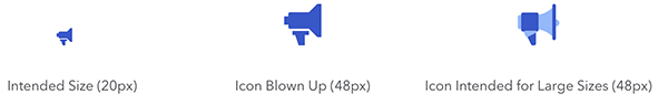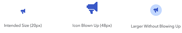 不過,若這些小圖標是你唯一能夠搞得到的素材的話,那么不妨試著將它置于另外一個帶有顏色的圖形當中:這樣的設計不僅能夠讓圖標達到預期的視覺體積,而且看起來要比單純放大,看起來細節(jié)會更多一些。