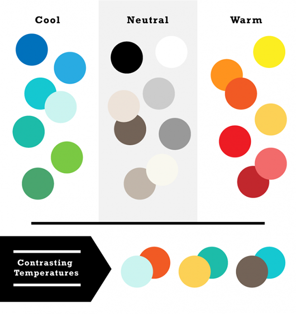 配色同樣最容易被感知到的設(shè)計(jì)元素,色彩的色相、明暗、飽和度上的差異,都可以制造足夠的對比度。同一種色相下,不同深淺的顏色之間的對比是非常明顯的,而我們最常見的就是在黑色背景上的白色文本和在白色背景上的黑色文本,這種對比度確保了內(nèi)容擁有基本的可讀性。當(dāng)然,在實(shí)際的色彩搭配當(dāng)中,對比度足夠明顯的配色方案會更加復(fù)雜,通常而言,下面的幾種搭配方式能夠給你對比明顯效果不錯的配色: