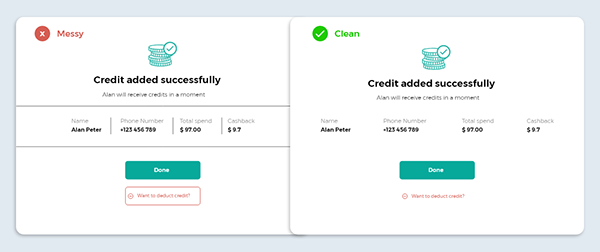 若想要將兩個不相關的元素分隔開來,使用分割線似乎理所應當,但不得不說這種方式已經(jīng)過時,而更貼合當下、更好、更優(yōu)雅的呈現(xiàn)方式是“留白”,因為分割線的方式不僅是因為過時,不僅會讓掃視頁面花費更長的時間,而且增加的信息噪音會影響整體的層次結構。而留白就會好很多。