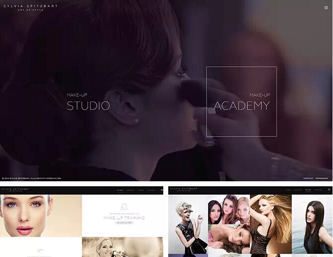例如:“sylviaspitzbart”化妝工作室,利用纖細線框,將內(nèi)容很好的分割,頁面簡潔而大方又不失品質(zhì)。