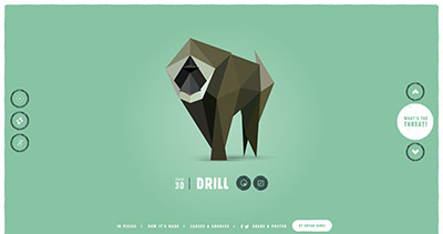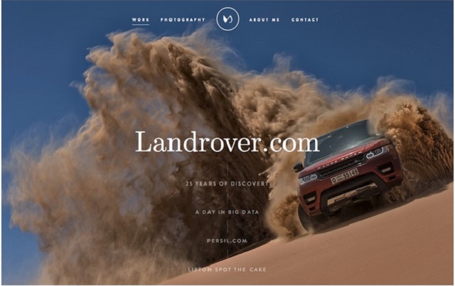 該圖的色彩對比是棕褐色沙塵與深藍色天空的強烈對比,能看到色輪,揚起的黃褐色沙塵創(chuàng)造了一種視覺運動路線,將你的目光指引到紅色的車身方向(也將你的視線帶往了白色文本所在位置)。這種網(wǎng)頁可視化設(shè)計的色彩搭配在審美上達到了一種平衡。