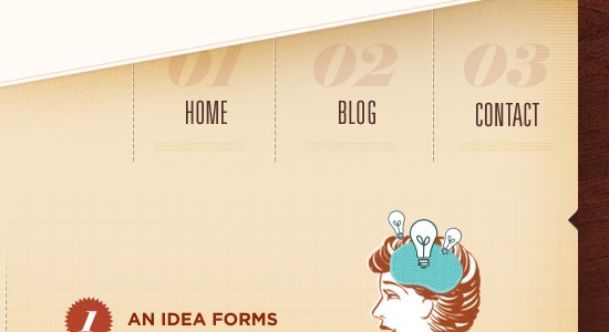 7、導(dǎo)航菜單周圍一圈略深于背景色的描邊讓導(dǎo)航和背景融合的更加自然。整個導(dǎo)航的顏色和底部的大約10個像素的陰影讓整個導(dǎo)航條看上去更像是電腦鍵盤上的一個個按鍵。