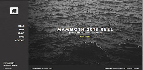 2、美妙的暗色首頁完美運用了背景與前景的對比。其左上角無縫貼合的漢堡按鈕與logo和文字完美回應(yīng),以美妙的方式呈現(xiàn)出了一副以圖片為核心的漂亮導(dǎo)航欄。