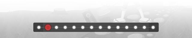 其中左右導航不但要滿足大場景中的畫面切換,還需要滿足第二個場景中小場景的切換,可以從場景背景圖所在的位置來判斷當前狀態(tài)是第幾個場景從而來控制切換。而寫導航的方式有兩種,可以將14個點寫在同一組標簽內(nèi);或者將⑴個和最后一個圓點按鈕與中間的圓點按鈕分開。切換場景時還應(yīng)注意切換的同時,導航的當前狀態(tài)的變化,它表示的是當前所處第幾屏起到真正導航的作用。