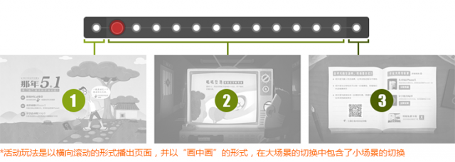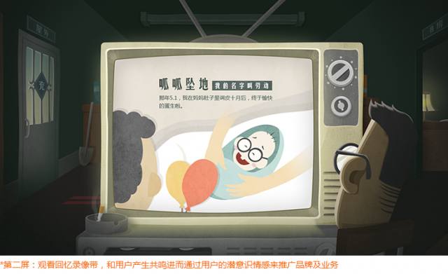 為了能最大化的促發(fā)用戶的潛意識,我們在整個活動中融入挖掘回憶錄像帶這個合乎邏輯的故事線讓用戶更易產(chǎn)生感情共鳴,當然,最主要的還是在這其中融入我們的業(yè)務(wù),使這些原本極具“商業(yè)化”的業(yè)務(wù)內(nèi)容軟化為了一個個擊中用戶記憶的“情結(jié)”,這樣既不會顯得突兀,也能契合用戶的心理活動。