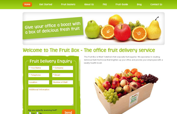 5、綠色是屬于大自然的顏色,相信很多人心里都是這樣想的。網(wǎng)站設(shè)計(jì)中使用綠色給人以舒適愉悅的感覺(jué),同時(shí)還可以增進(jìn)創(chuàng)意。綠色效應(yīng)實(shí)驗(yàn)中,綠色顯著的增進(jìn)受試者的創(chuàng)造力,效果超過(guò)其他顏色。綠色的網(wǎng)站設(shè)計(jì)在一些以無(wú)公害蔬菜、水果、或以愛(ài)護(hù)自然為主題的網(wǎng)站中比較的常見(jiàn)。如:The Fruit Box網(wǎng)站設(shè)計(jì)。