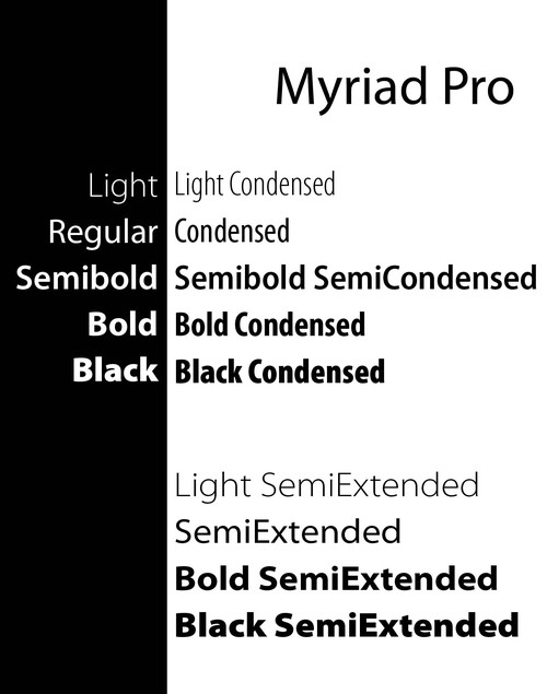 五、比例:比例變化會(huì)使家族里出現(xiàn)“瘦”和“胖”的變異,這是對(duì)字形橫向或縱向比例的收縮變化,在西文的傳統(tǒng)系統(tǒng)命名中通常會(huì)用Condensed(橫向壓縮)和Extended(橫向拉伸)來區(qū)分長(zhǎng)和寬兩個(gè)類別,這兩種變化可以比較好的處理當(dāng)空間收到局限時(shí)字體的應(yīng)用,而不會(huì)讓字體出現(xiàn)因?yàn)檫M(jìn)行直接的縮放所而導(dǎo)致的風(fēng)格變形。