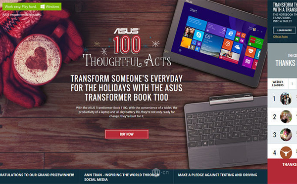 100 Thoughtful Acts是一個給人一種無比注重美學印象的網(wǎng)站。用心觀察不難發(fā)現(xiàn)細小的CTA是一個由文本和色彩組成,而采用按鈕采用紅色的基調(diào)顯然是最明確的選擇,它令按鈕融合到環(huán)境中,而不是從中脫穎而出,給人很舒服的感覺。