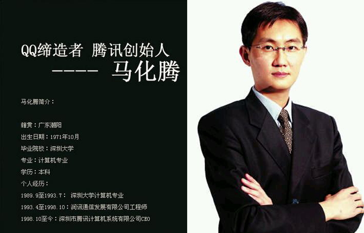 每一個(gè)成功創(chuàng)業(yè)者的背后都會(huì)有一點(diǎn)心酸的故事,因?yàn)槿藗兒芏嗟臅r(shí)候都只能看到事情的表面,只能看到成功人士在成功之后的輝煌,卻往往會(huì)忽視他在成功之前的艱辛付出,就拿馬化騰所創(chuàng)立的如今在國內(nèi)非常知名的互聯(lián)網(wǎng)綜合服務(wù)商騰訊來說,它之所以能夠有今天的成就必定是經(jīng)過時(shí)間的磨礪,在馬化騰的創(chuàng)業(yè)道路上也必定是布滿荊棘的。馬化騰1971年10月29日生于廣東省汕頭市潮南區(qū),騰訊公司主要?jiǎng)?chuàng)辦人之一,現(xiàn)擔(dān)任騰訊公司控股董事會(huì)主席兼首席執(zhí)行官;全國青聯(lián)副主席。