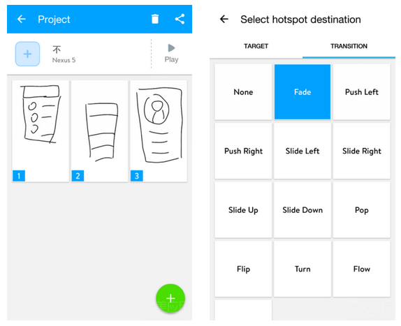 Marvel的側(cè)重點(diǎn)在于快速制作,除了拍照或使用相冊內(nèi)照片,還支持直接畫草圖。頁面之間還可以添加跳轉(zhuǎn)動作,是一款便捷易用的原型制作工具。