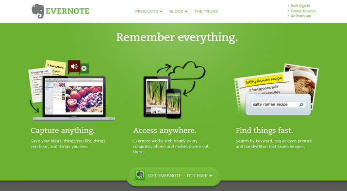 Evernote屬于分類筆記應(yīng)用類中最優(yōu)秀的app設(shè)計(jì)工具,它能夠在不同平臺上工作,如:智能手機(jī)、平板電腦、或者通過Cloud在臺式電腦上使用,只要是用它保存的東西,你可以在任何時(shí)間任何地點(diǎn)進(jìn)行存取。同時(shí),再加上Web Clopper和Skitch這樣的插件,你可以將喜歡的網(wǎng)頁保存到個(gè)人文件夾中,這是創(chuàng)建書簽和閱讀清單的最佳工具。