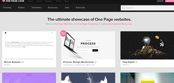 One Page Love網(wǎng)站值得所有從事網(wǎng)站設(shè)計(jì)的設(shè)計(jì)師收藏,它一個(gè)提供海量單頁(yè)模版展示和素材資源的網(wǎng)站,是網(wǎng)頁(yè)設(shè)計(jì)師尋找靈感和獲取精美網(wǎng)頁(yè)設(shè)計(jì)較好的站點(diǎn),該網(wǎng)站于2006年成立,成立至今一直都發(fā)展的很好,截止到目前已收錄30多種行業(yè)分類的模版。