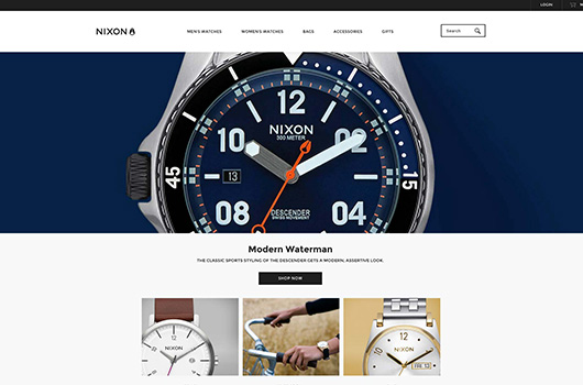 動畫是吸引顧客、與他們進行良好溝通較好的方式,目前很多電商網(wǎng)站開始將它注入設計中,讓在線購物體驗效果更卓越。如果使用位置和時機恰當,動畫會讓你的顧客感到你在真正關心他們的體驗。在2016年,你會看到更多電商網(wǎng)站有創(chuàng)意地運用動畫--例如按鈕旋轉、圖標轉動和加載進度條--為顧客留下深刻印象。想找點靈感嗎?不妨來看看Nixon。