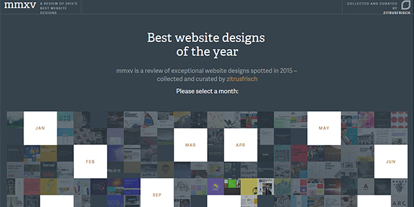 當進入網(wǎng)站后界面以后,你會發(fā)現(xiàn)MMXV網(wǎng)站中并不存在多余的介紹和花里胡俏的裝飾,有一行關(guān)于網(wǎng)站主人zitrusfrisch 的介紹,他是一個國外服務類產(chǎn)品中非常有威望的設(shè)計師,榜單的收集和網(wǎng)站的視覺設(shè)計都是由他一人完成的,非常良心。