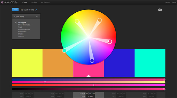 關于Adobe Kuler在線配色工具,相信大多數(shù)設計師都不陌生,它是一個能幫助設計師節(jié)約時間且功能強大的產品,你不僅可以在上面尋找到預置的配色方案,也可以創(chuàng)建屬于自己的色板,并且該軟件是完全免費的,當我們在任何作品上使用它的時候完全不用擔心有版權問題。