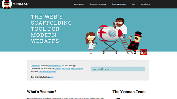 Yeoman剛剛上市的時(shí)間并不長(zhǎng),它是一個(gè)新興的工具,結(jié)合了 Yo、Grunt 和 Bower 等工具,組成了一個(gè)完整的工具集合,提供各種Web應(yīng)用開(kāi)發(fā)中所需的實(shí)用功能。Yeoman最大優(yōu)勢(shì)在于它整合了各種流行的實(shí)用工具,提供了一站式的解決方案,使得開(kāi)發(fā)人員可以專(zhuān)注于應(yīng)用本身的實(shí)現(xiàn),而不用在搭建應(yīng)用的基礎(chǔ)結(jié)構(gòu)、進(jìn)行任務(wù)構(gòu)建和其他輔助任務(wù)上花費(fèi)過(guò)多的時(shí)間和精力。