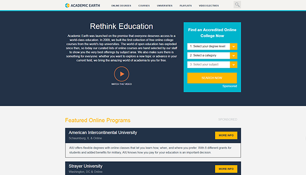 Academic Earth堅(jiān)信每個(gè)人都應(yīng)該獲得世界一流的教育,或者這也是該網(wǎng)站一直不斷提供一系列免費(fèi)的在線的課程的原因,這些課程均來自世界頂尖的大學(xué)?,F(xiàn)在,我們可以在課堂之外學(xué)習(xí)原汁原味、富有啟迪的視頻,這些視頻能夠激發(fā)你的創(chuàng)造力并且讓你想與他人交流討論。觀看、學(xué)習(xí)、分享、思辨。
