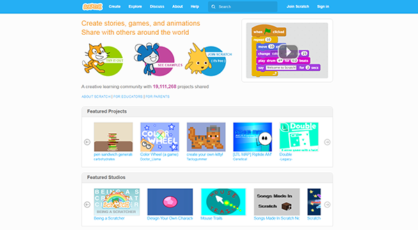 Scrath擁有超過40個(gè)的Lac項(xiàng)目,是一個(gè)非常棒的學(xué)習(xí)社區(qū)。你可以創(chuàng)建故事,游戲和動(dòng)畫并分享給世界各地的朋友和家人。加入Scratch,弄一個(gè)你自己的項(xiàng)目吧。