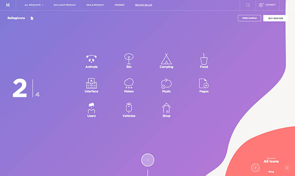不知道小伙伴們是否已經(jīng)意識(shí)到,不同形狀,不同風(fēng)格的圖片,一旦成群結(jié)對(duì)的 出現(xiàn)在屏幕上,總能夠給人們帶去不一樣的體驗(yàn),所以作為設(shè)計(jì)師你可以考慮將圖標(biāo)擺成不同的陣列,如果你想強(qiáng)化視覺(jué),甚至可以將圖標(biāo)放大來(lái)使用。另外,最主要的是使用圖標(biāo)集群他不僅會(huì)讓你跳出日常圖標(biāo)的使用窠臼,重新思考圖標(biāo)的使用方法;同時(shí)你可以基于某個(gè)圖標(biāo)包來(lái)設(shè)計(jì),也可以根據(jù)需求自定義。