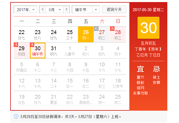 天津網(wǎng)站建設(shè)-文率科技根據(jù)國(guó)務(wù)院關(guān)于2017年部分節(jié)假日安排,將放假三天:2017年5月28日至5月30日放假公休,5月27日(星期六)照常上班。